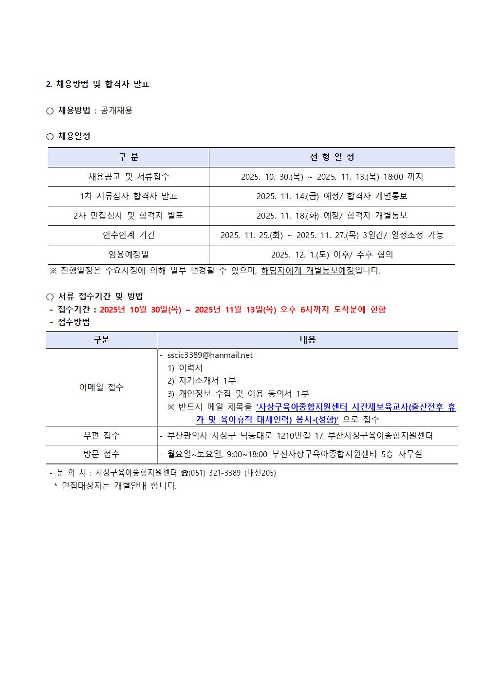 [ä¿ë] »ç»ó±¸À°¾ÆÁ¾ÇÕÁö¿ø¼¾ÅÍ ½Ã°£Á¦º¸À°±³»ç(Ãâ»êÀüÈÄ ÈÞ°¡ ¹× À°¾ÆÈÞÁ÷ ´ëüÀηÂ) ä¿ë °ø°í