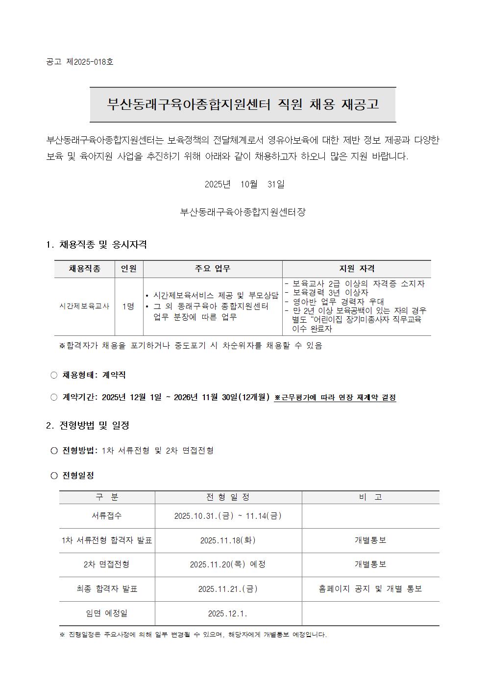 [ä¿ë] µ¿·¡±¸À°¾ÆÁ¾ÇÕÁö¿ø¼¾ÅÍ Á÷¿ø(½Ã°£Á¦º¸À°±³»ç) ä¿ë Àç°ø°í