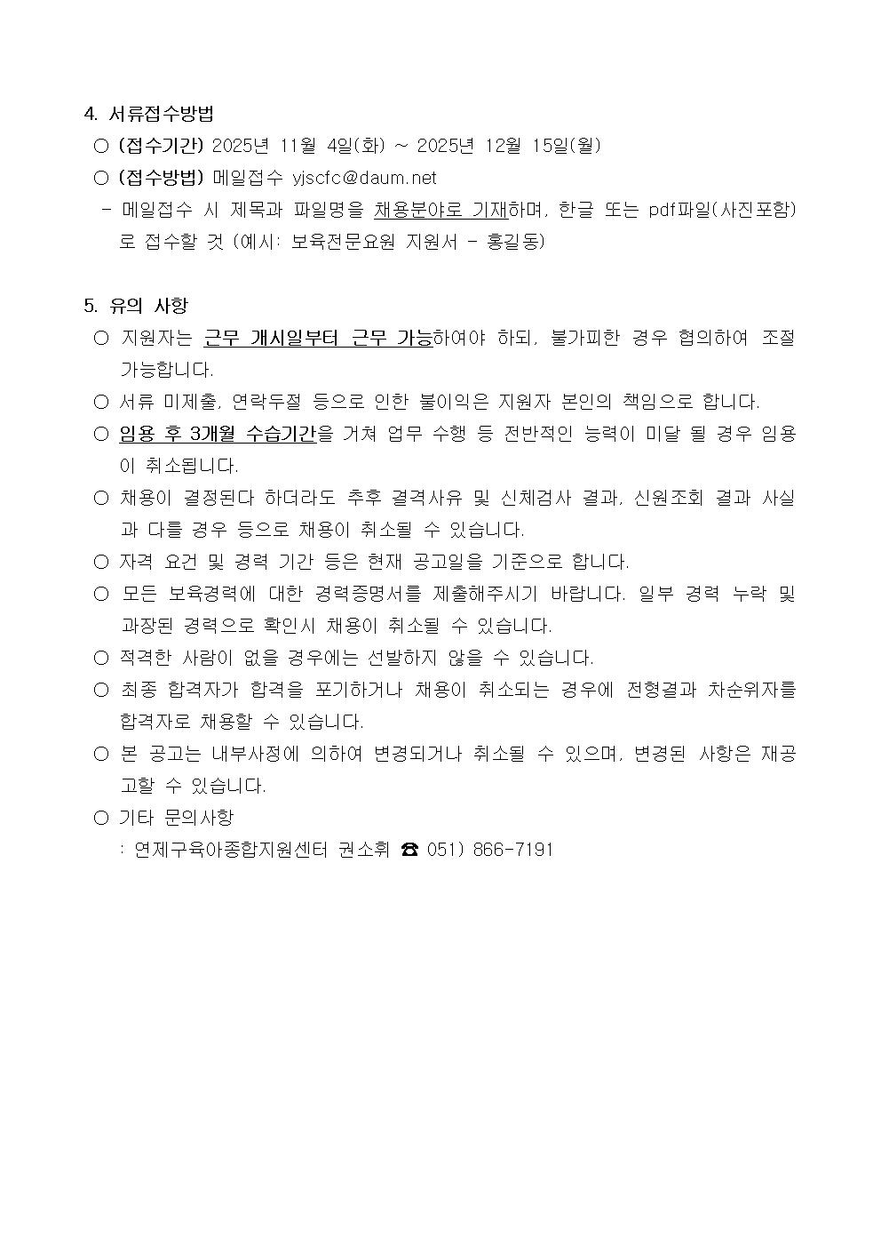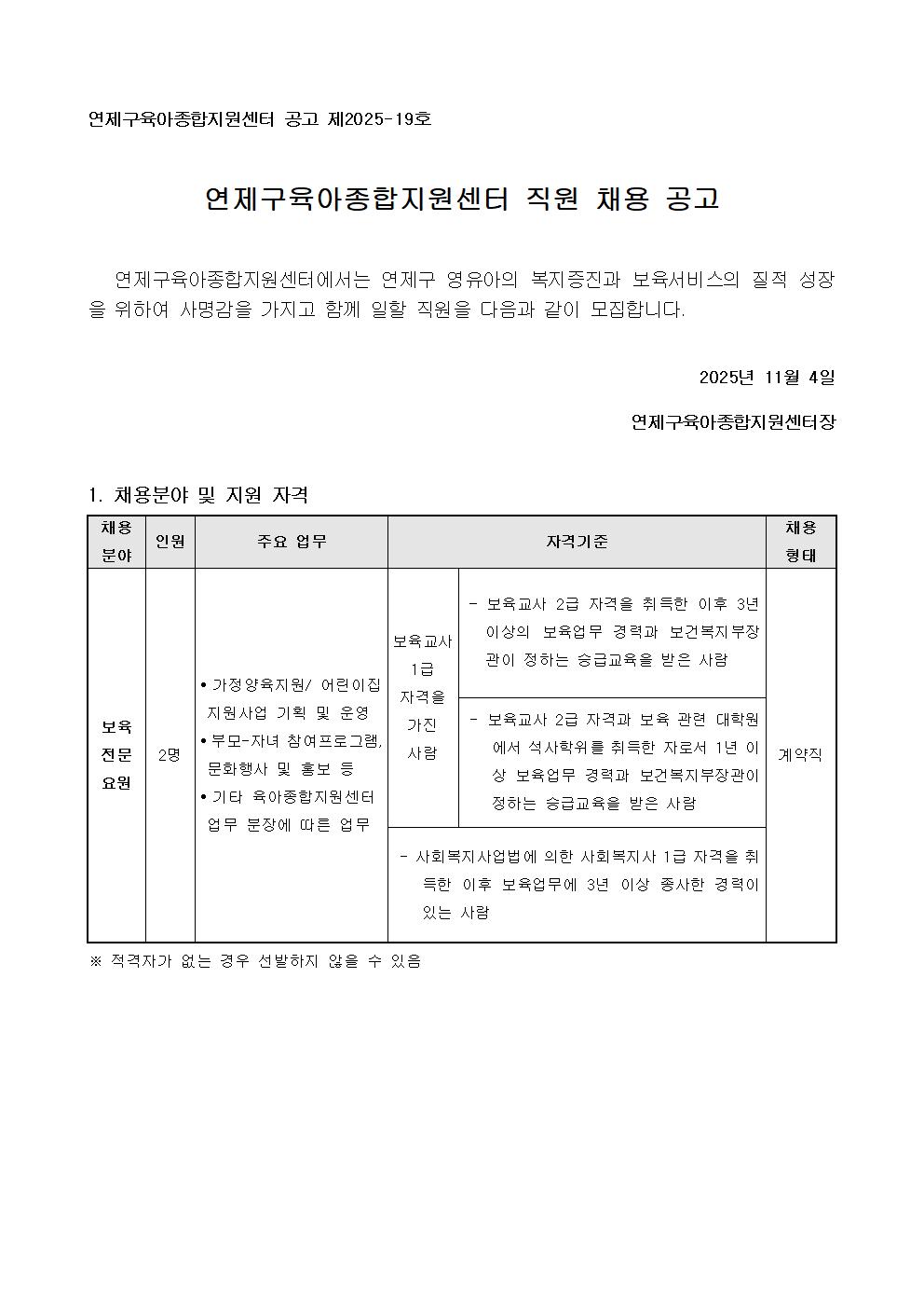 [ä¿ë] ¿¬Á¦±¸À°¾ÆÁ¾ÇÕÁö¿ø¼¾ÅÍ º¸À°Àü¹®¿ä¿ø ä¿ë °ø°í