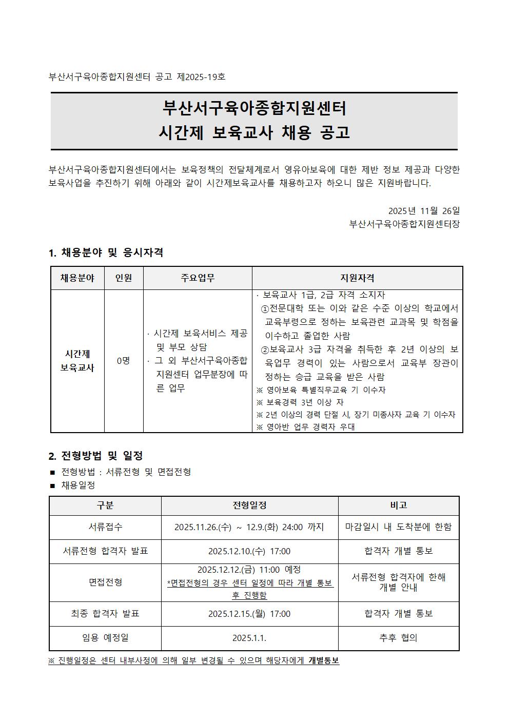 [ä¿ë] ºÎ»ê¼±¸À°¾ÆÁ¾ÇÕÁö¿ø¼¾ÅÍ ½Ã°£Á¦ º¸À°±³»ç ä¿ë °ø°í
