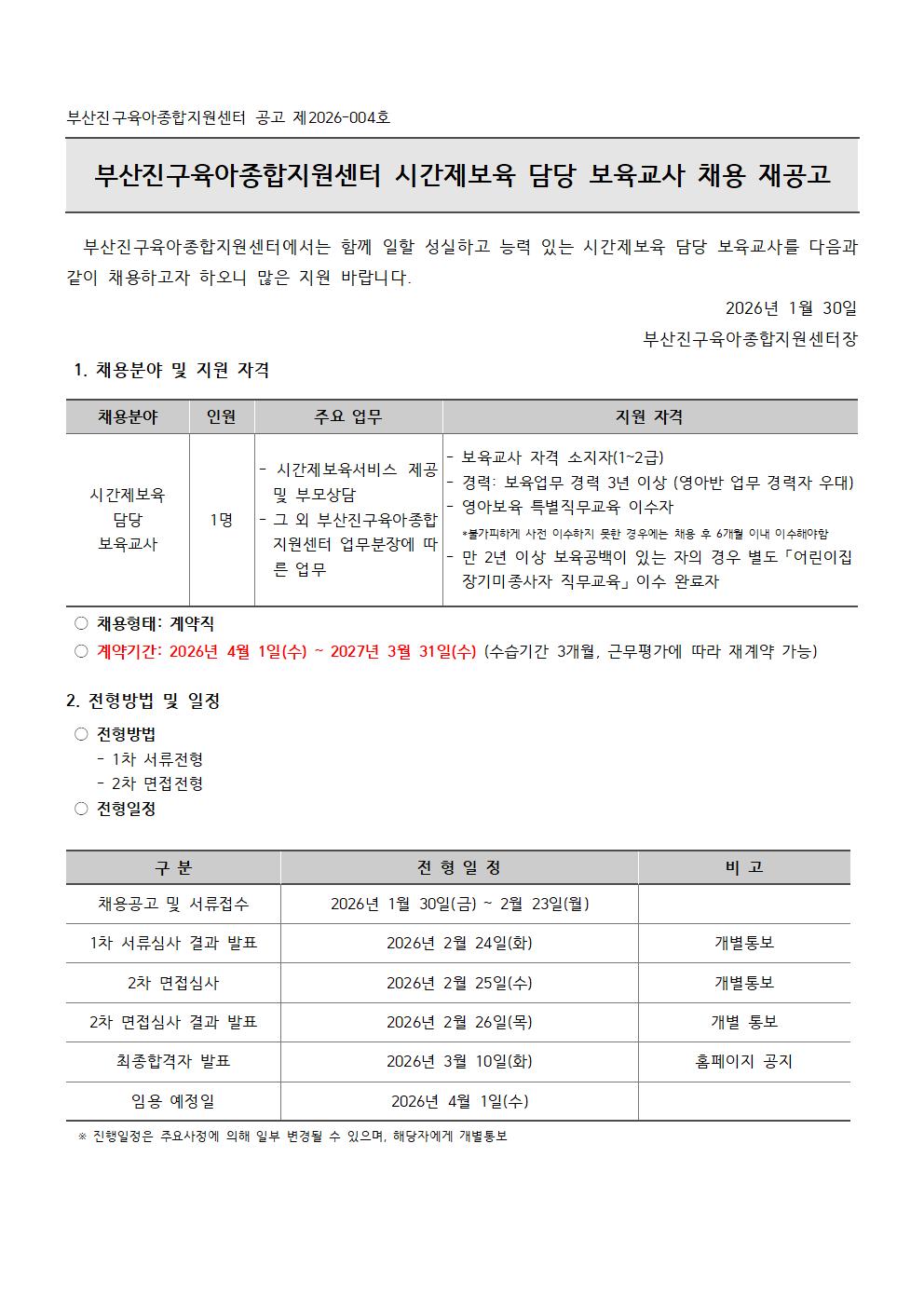 [ä¿ë] ºÎ»êÁø±¸À°¾ÆÁ¾ÇÕÁö¿ø¼¾ÅÍ ½Ã°£Á¦º¸À° ´ã´ç º¸À°±³»ç ä¿ë Àç°ø°í