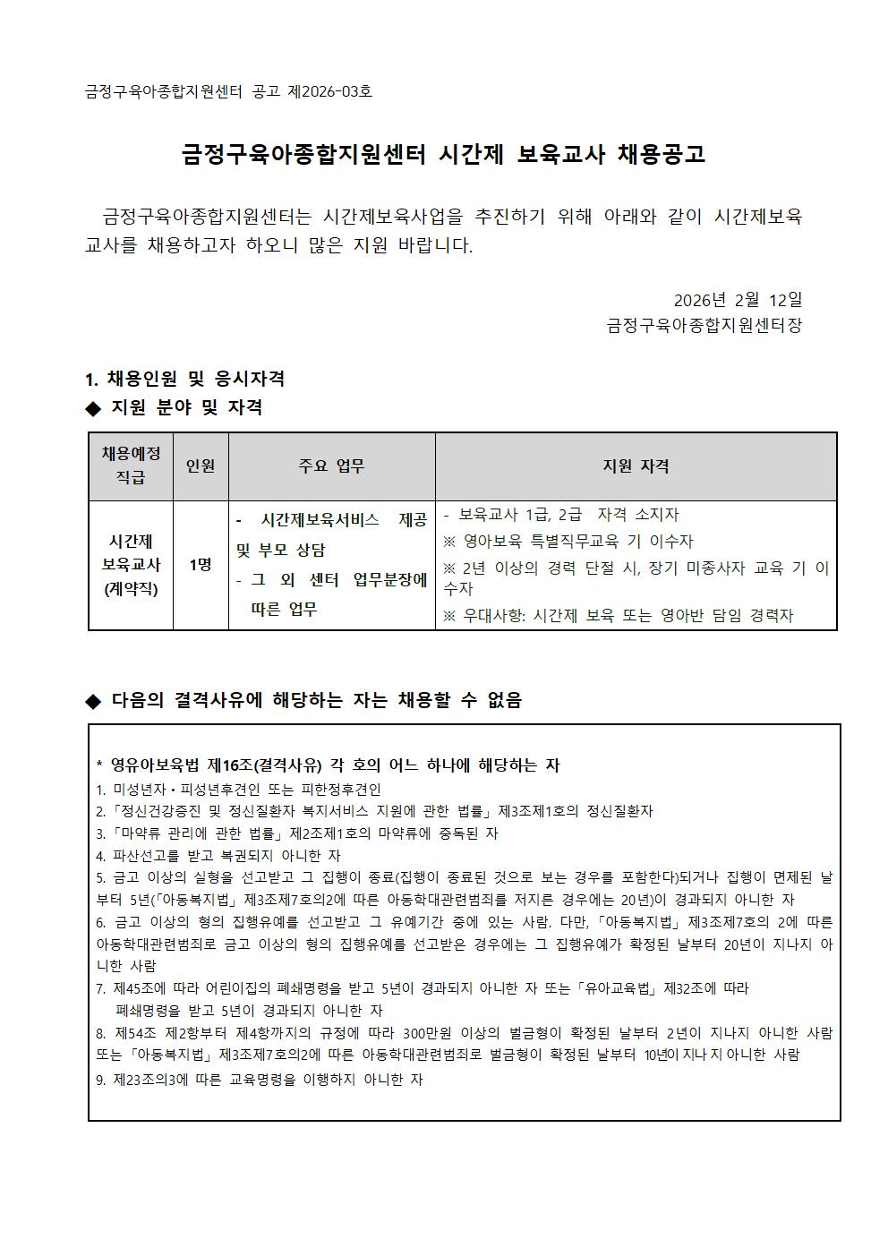 [ä¿ë] ±ÝÁ¤±¸À°¾ÆÁ¾ÇÕÁö¿ø¼¾ÅÍ ½Ã°£Á¦º¸À°±³»ç ä¿ë °ø°í