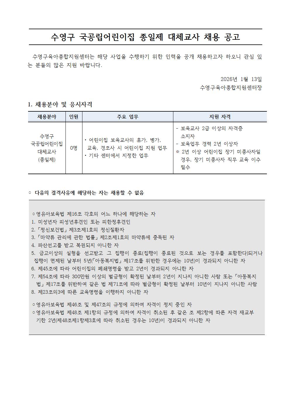 [ä¿ë] ¼ö¿µ±¸À°¾ÆÁ¾ÇÕÁö¿ø¼¾ÅÍ Á÷¿ø ä¿ë°ø°í