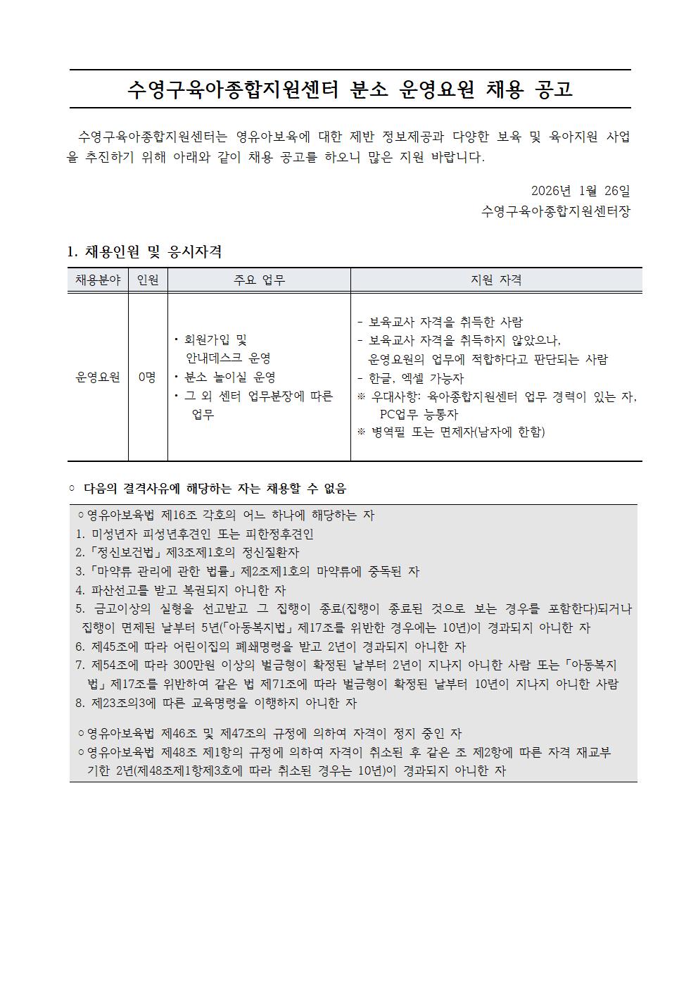 [ä¿ë] ¼ö¿µ±¸ À°¾ÆÁ¾ÇÕÁö¿ø¼¾ÅÍ Ã¤¿ë°ø°í¹®(ºÐ¼Ò ¿î¿µ¿ä¿ø)