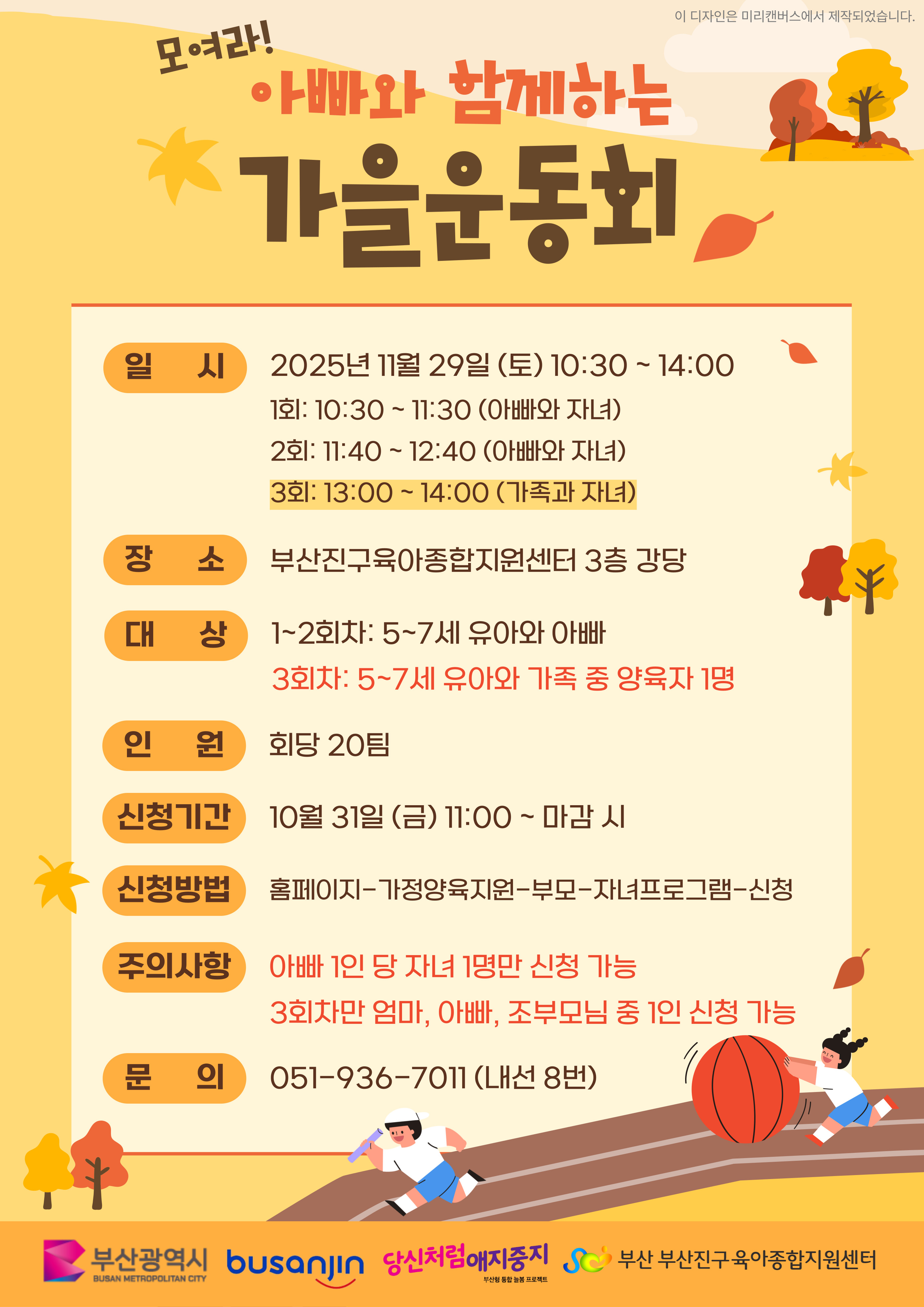 | [11¿ù ¾ÖÁöÁßÁö µ¥ÀÌ]¾Æºü¿Í ÇÔ²² ÇÏ´Â °¡À» ¿îµ¿È¸ 2ȸÂ÷(11:40~12:40) | |||