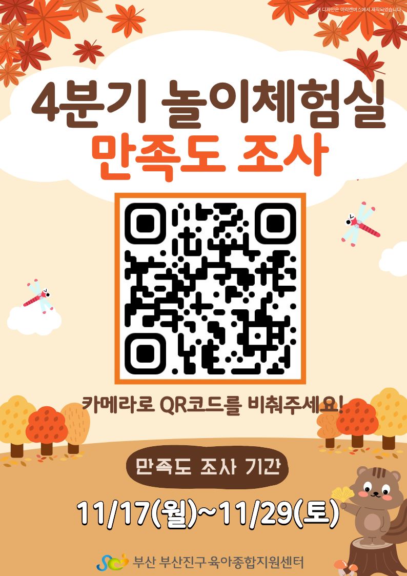 ºÎ»êÁø±¸À°¾ÆÁ¾ÇÕÁö¿ø¼¾ÅÍ¿¡¼ º¸´Ù ³ªÀº ³îÀÌüÇè½Ç ¿î¿µÀ» À§ÇØ ¸¸Á·µµ Á¶»ç¸¦ ½Ç½ÃÇÕ´Ï´Ù.