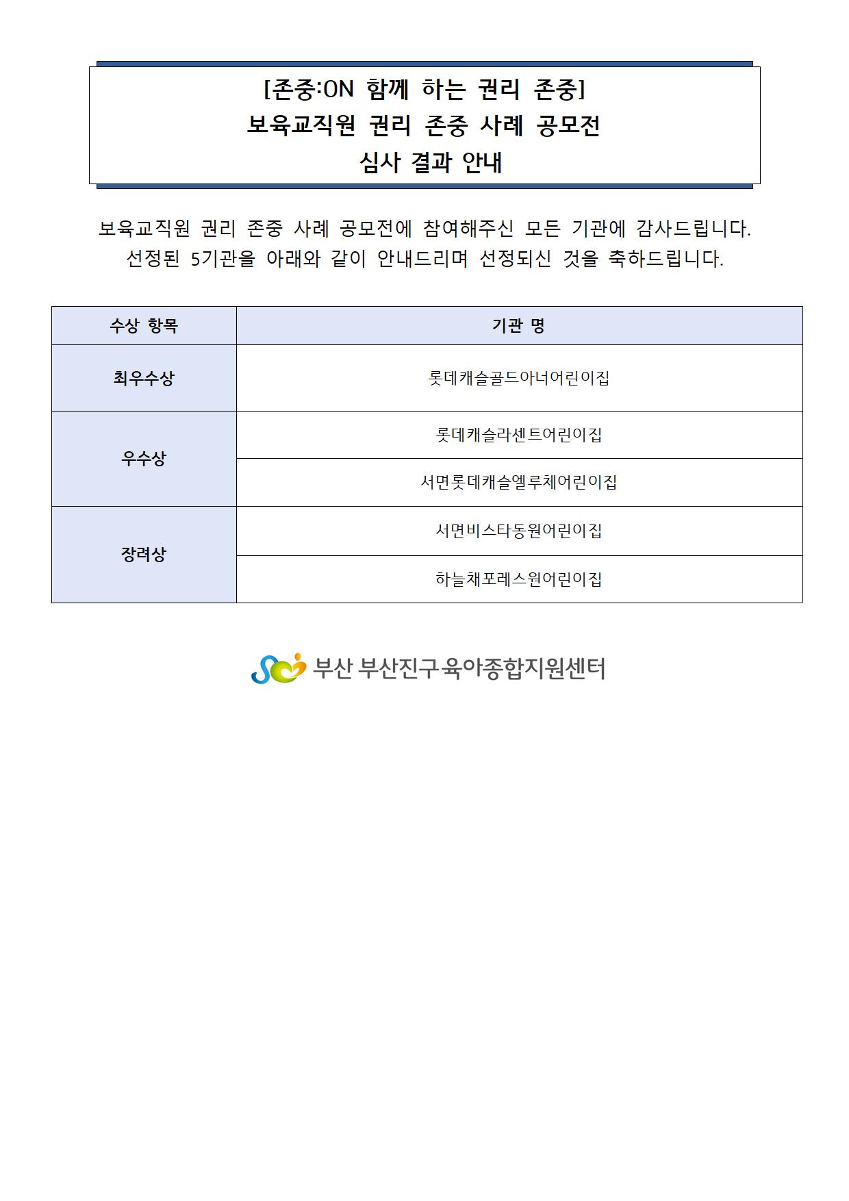2025³â '[Á¸Áß:ON ÇÔ²² ÇÏ´Â ±Ç¸® Á¸Áß] º¸À°±³Á÷¿ø ±Ç¸® Á¸Áß »ç·Ê °ø¸ðÀü' ½É»ç °á°ú ¾È³»