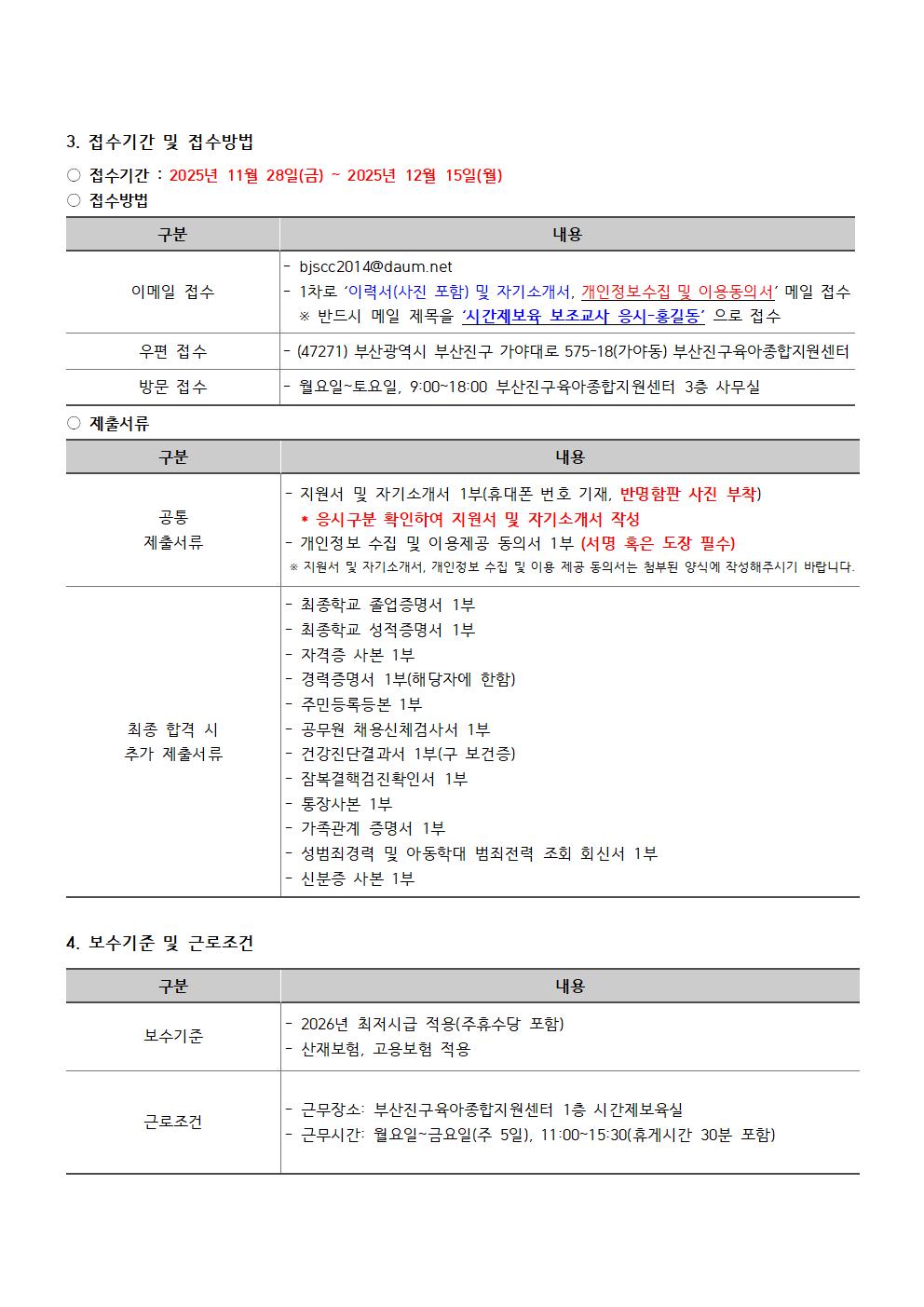 [ä¿ë] ºÎ»êÁø±¸À°¾ÆÁ¾ÇÕÁö¿ø¼¾ÅÍ ½Ã°£Á¦º¸À° º¸Á¶±³»ç ä¿ë °ø°í