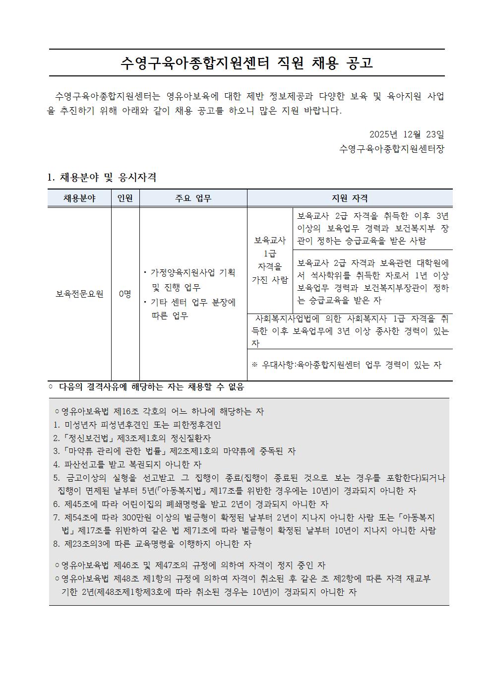 [ä¿ë] [¼ö¿µ±¸À°¾ÆÁ¾ÇÕÁö¿ø¼¾ÅÍ Á÷¿ø ä¿ë°ø°í