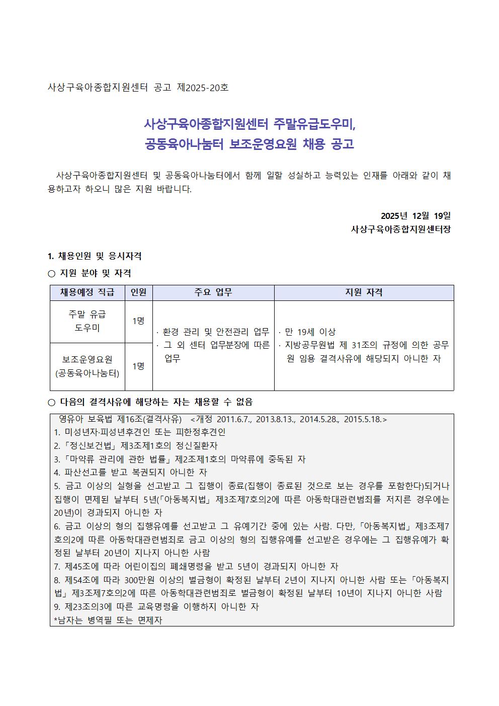 [ä¿ë]»ç»ó±¸À°¾ÆÁ¾ÇÕÁö¿ø¼¾ÅÍ ÁÖ¸» À¯±Þ µµ¿ì¹Ì, °øµ¿À°¾Æ³ª´®ÅÍ º¸Á¶¿î¿µ¿ä¿ø ä¿ë