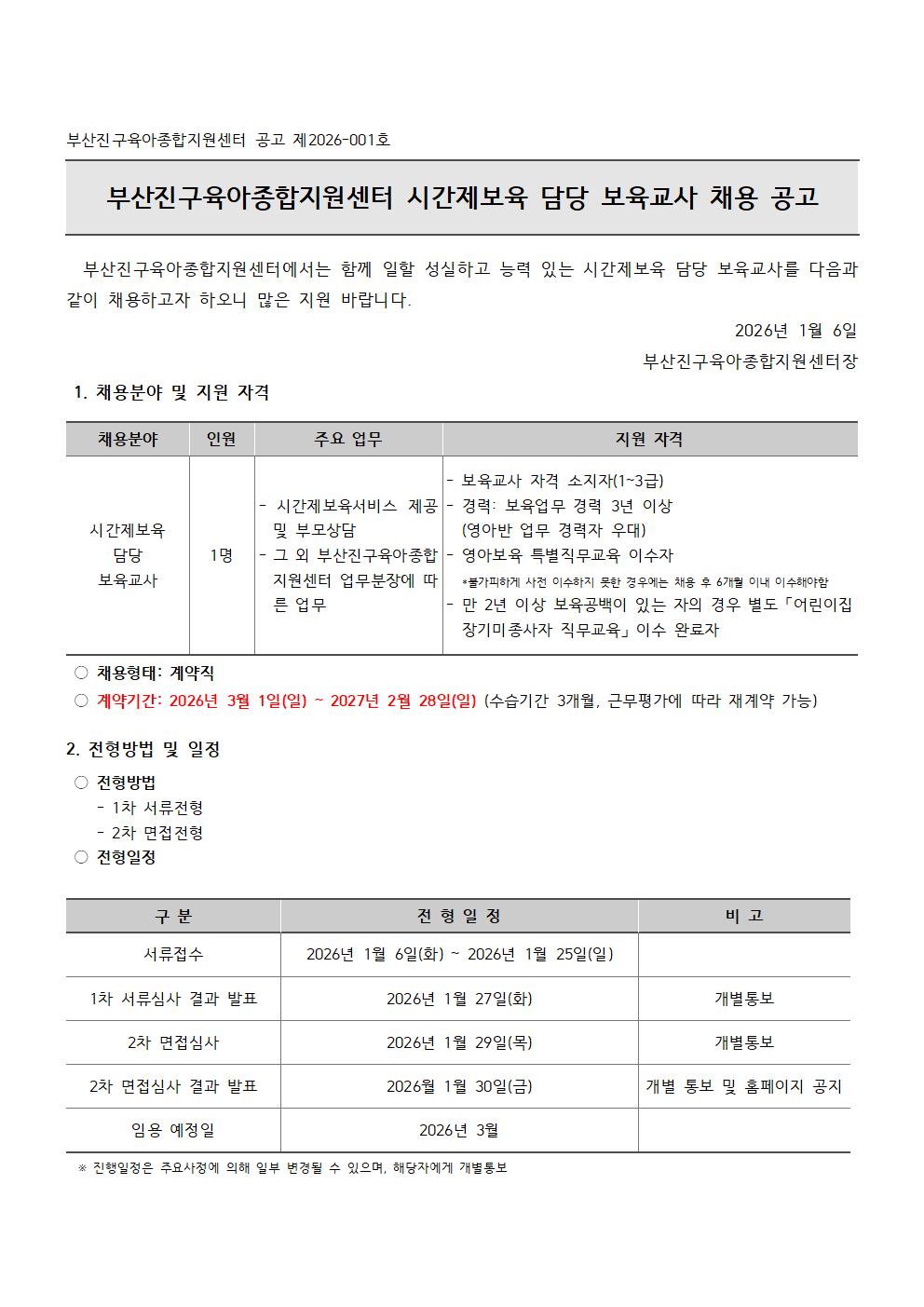 [°ø°í] ºÎ»êÁø±¸À°¾ÆÁ¾ÇÕÁö¿ø¼¾ÅÍ ½Ã°£Á¦º¸À° ´ã´ç º¸À°±³»ç ä¿ë °ø°í