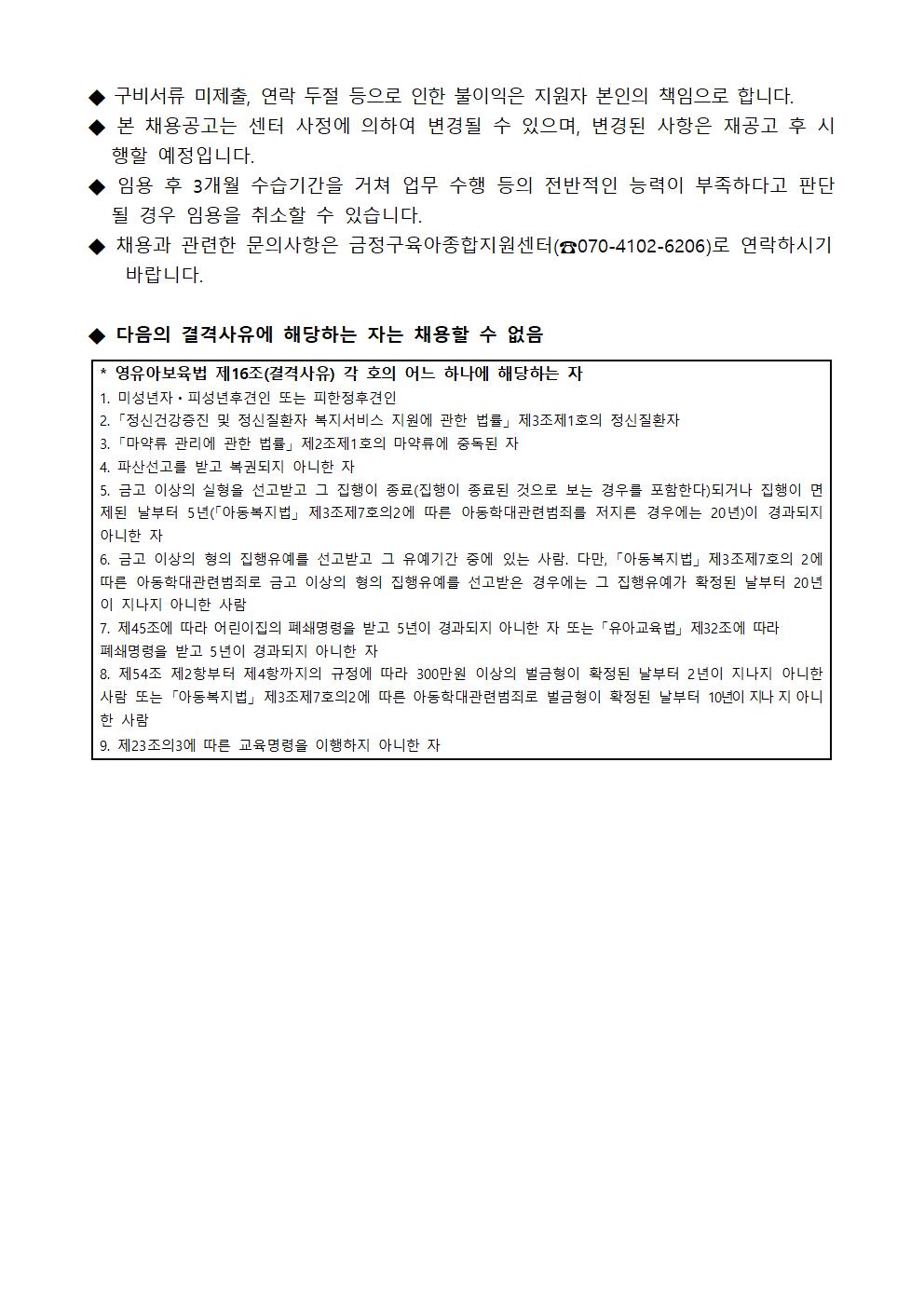 [ä¿ë]±ÝÁ¤±¸À°¾ÆÁ¾ÇÕÁö¿ø¼¾ÅÍ º¸À°Àü¹®¿ä¿ø(À°¾ÆÈÞÁ÷ ´ëü) ä¿ë °ø°í