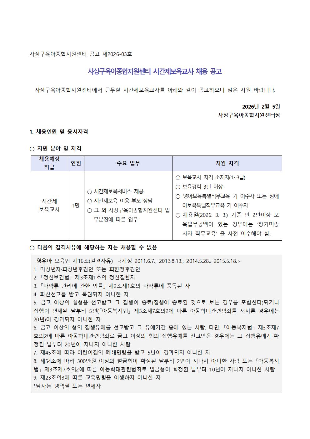 [ä¿ë]»ç»ó±¸À°¾ÆÁ¾ÇÕÁö¿ø¼¾ÅÍ ½Ã°£Á¦º¸À°±³»ç ä¿ë °ø°í