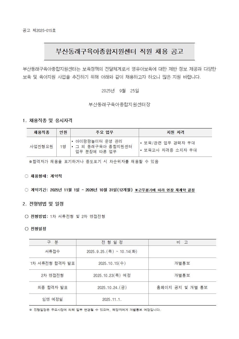 [ä¿ë] µ¿·¡±¸À°¾ÆÁ¾ÇÕÁö¿ø¼¾ÅÍ »ç¾÷ÁøÇà¿ä¿ø ä¿ë °ø°í