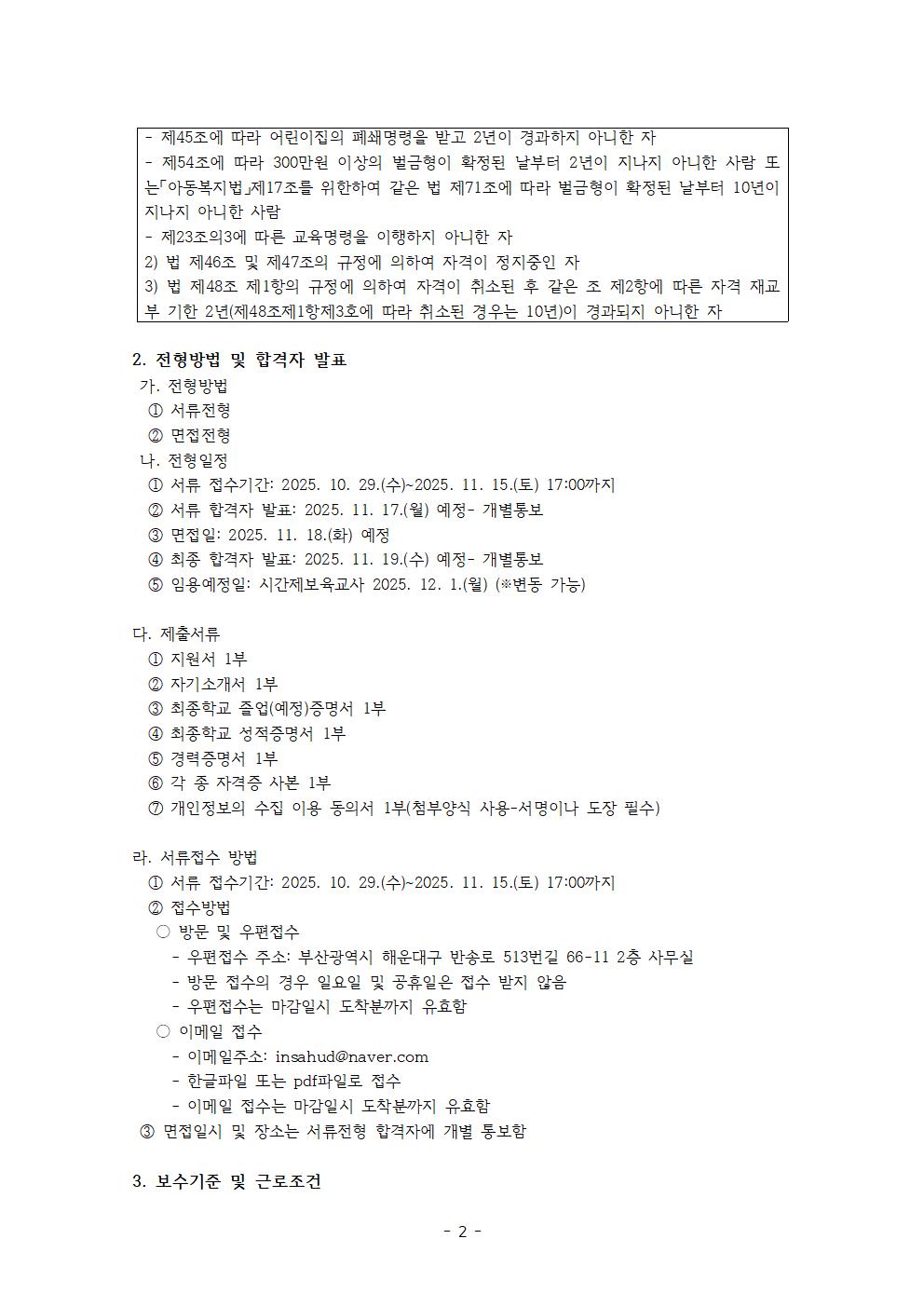 [ä¿ë]ÇØ¿î´ë±¸À°¾ÆÁ¾ÇÕÁö¿ø¼¾ÅÍ ½Ã°£Á¦ º¸À°±³»ç ä¿ë °ø°í