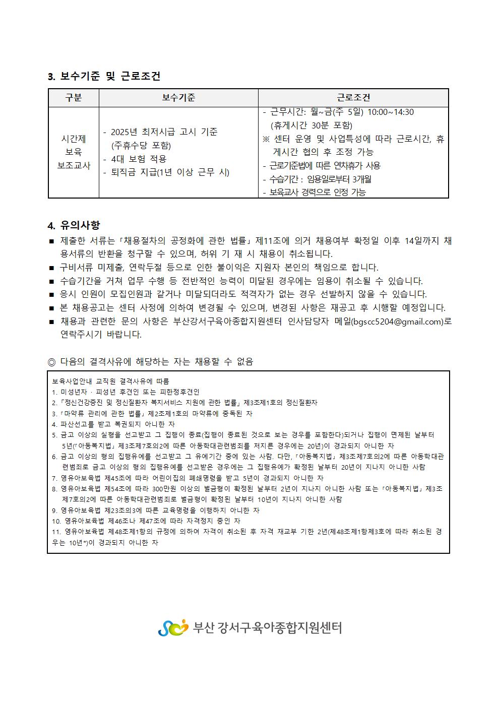 [ä¿ë] ºÎ»ê°¼±¸À°¾ÆÁ¾ÇÕÁö¿ø¼¾ÅÍ ½Ã°£Á¦º¸À° º¸Á¶±³»ç ä¿ë °ø°í