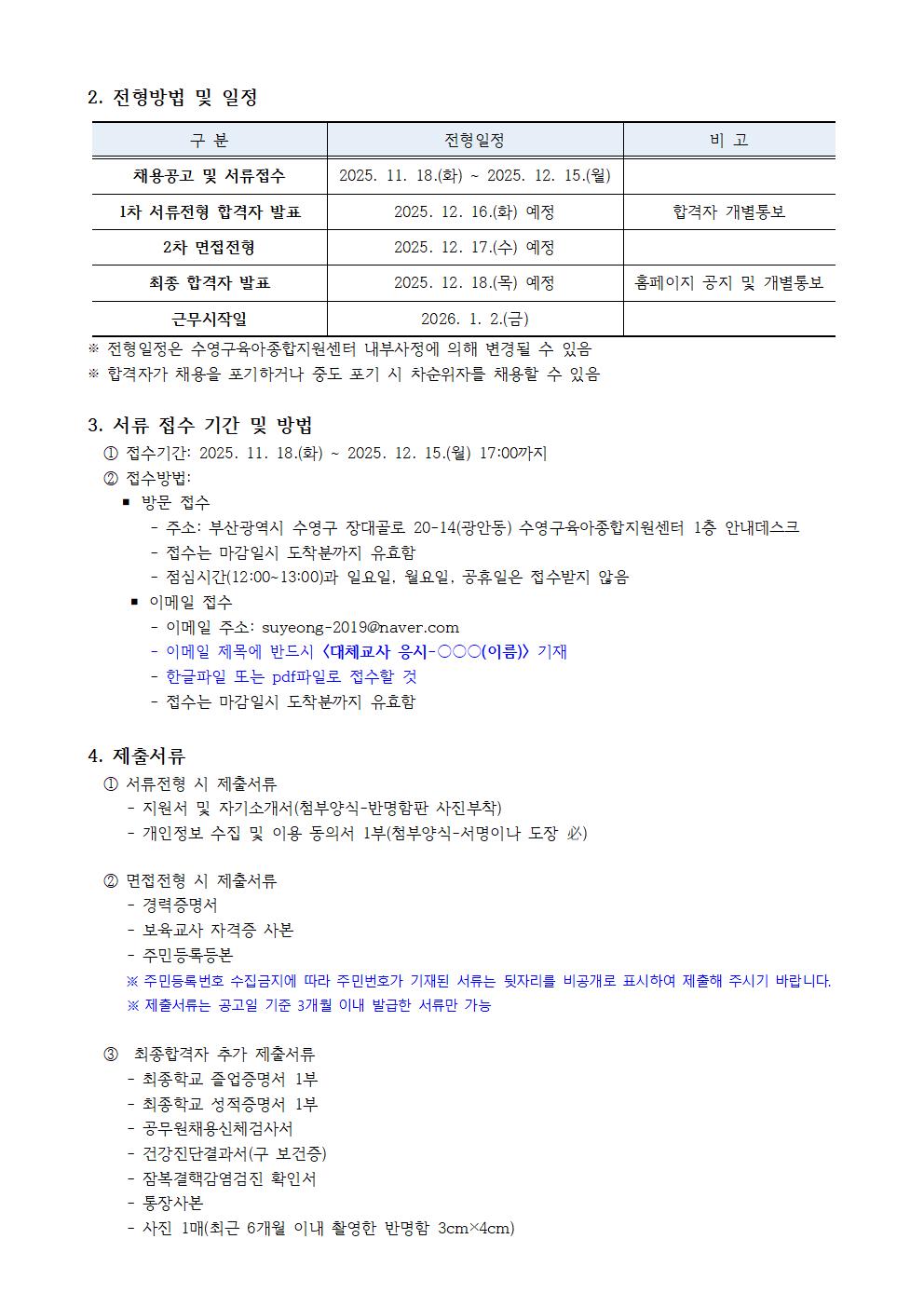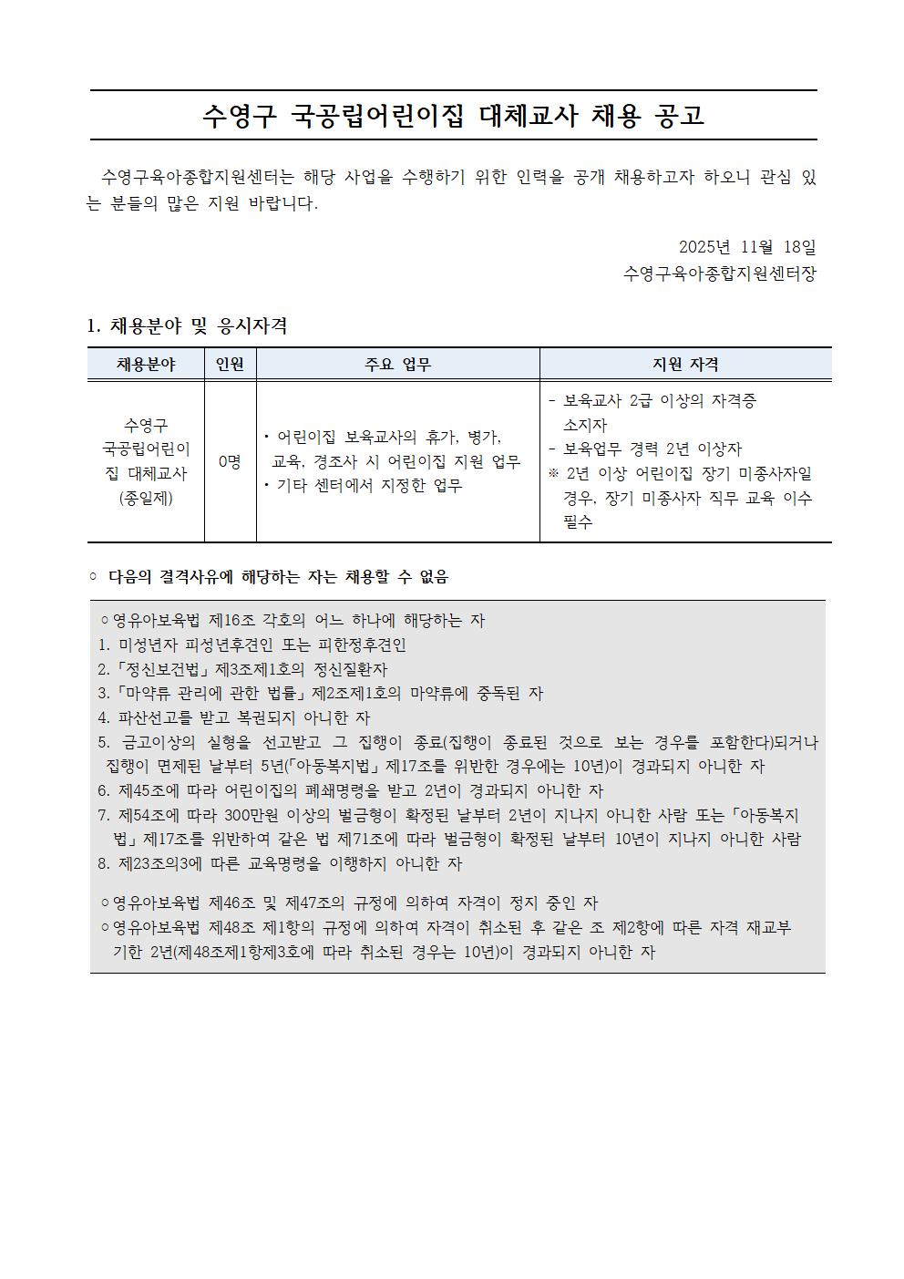 [ä¿ë] ¼ö¿µ±¸ À°¾ÆÁ¾ÇÕÁö¿ø¼¾ÅÍ Ã¤¿ë°ø°í¹®(´ëü±³»ç)