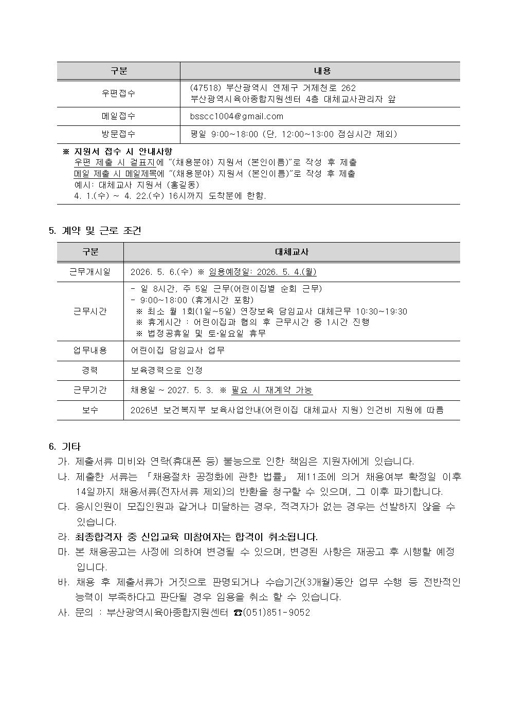 [ä¿ë] ºÎ»ê±¤¿ª½ÃÀ°¾ÆÁ¾ÇÕÁö¿ø¼¾ÅÍ ´ëü±³»ç ä¿ë °ø°í