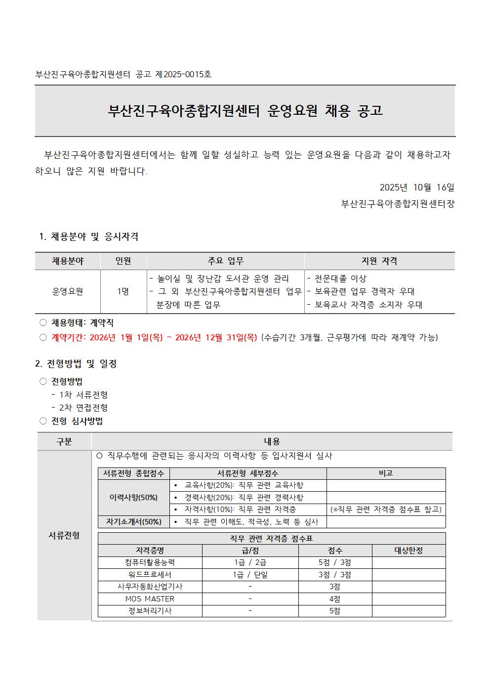 [ä¿ë]ºÎ»êÁø±¸À°¾ÆÁ¾ÇÕÁö¿ø¼¾ÅÍ ¿î¿µ¿ä¿ø ä¿ë