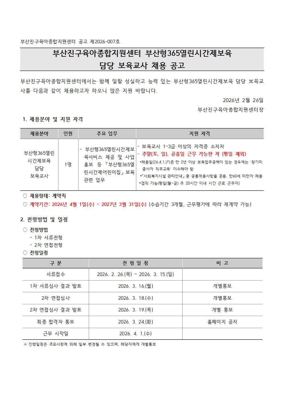 [ä¿ë] ºÎ»êÁø±¸À°¾ÆÁ¾ÇÕÁö¿ø¼¾ÅÍ ºÎ»êÇü365¿¸°½Ã°£Á¦º¸À°±³»ç ä¿ë °ø°í