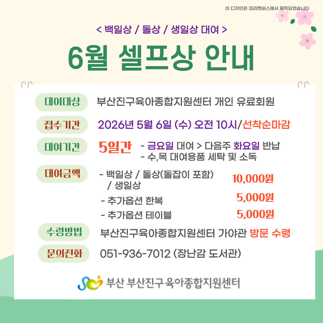 | Àå¼Ò | ºÎ»êÁø±¸À°¾ÆÁ¾ÇÕÁö¿ø¼¾ÅÍ Àå³°¨µµ¼°ü | ||