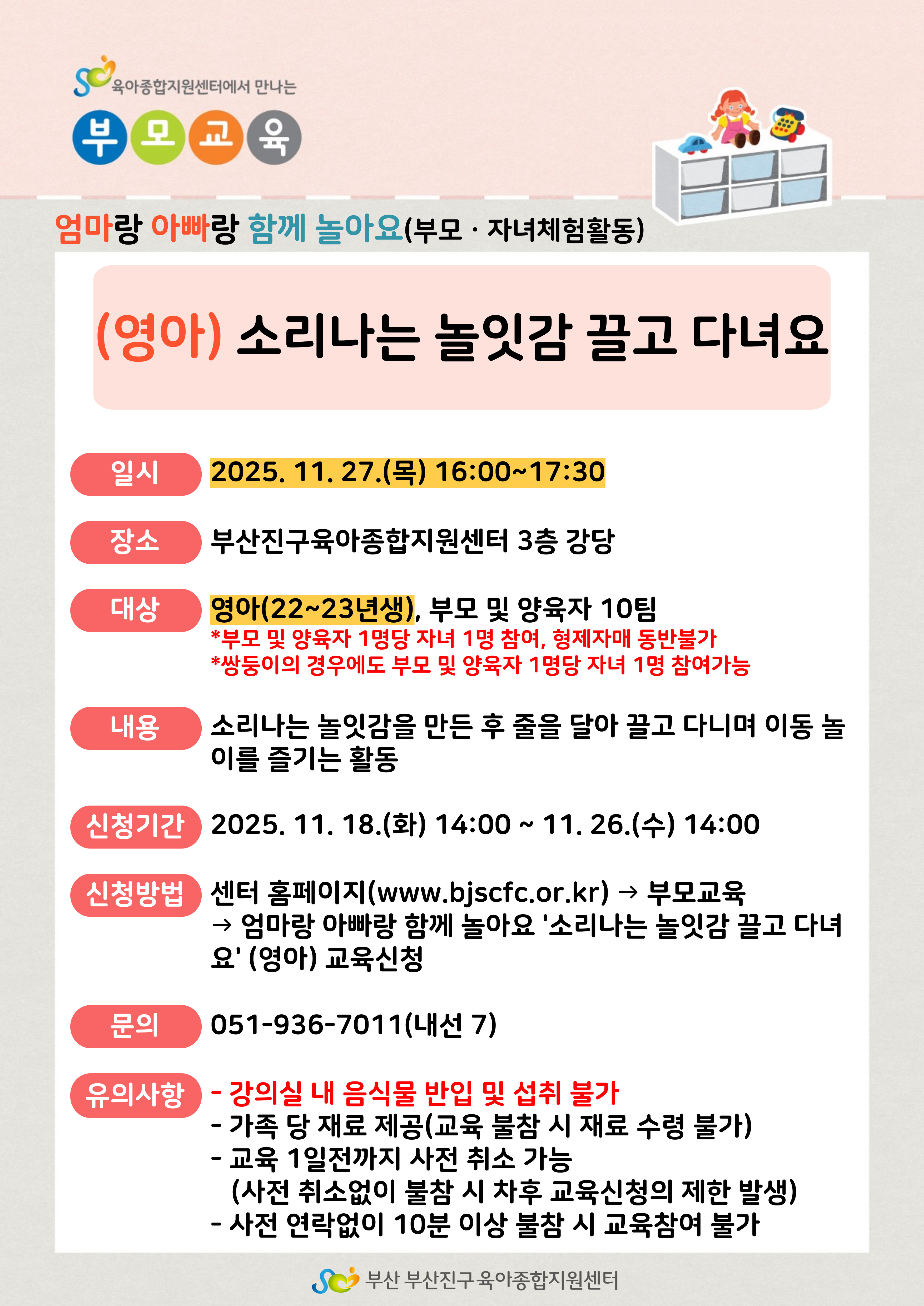 | [11¿ù °øÅëºÎ¸ð±³À°] ¾ö¸¶¶û ¾Æºü¶û ÇÔ²² ³î¾Æ¿ä '¼Ò¸®³ª´Â ³îÀÕ°¨ ²ø°í ´Ù³à¿ä'(¿µ¾Æ) | |||